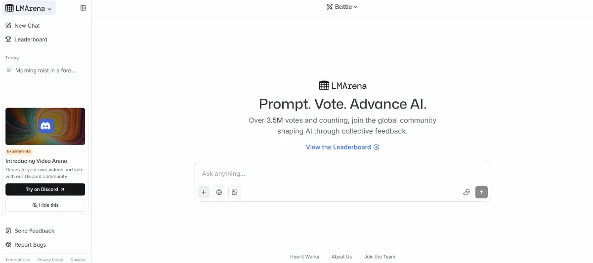 When generation is complete, two images will be displayed. Evaluate which image is superior with buttons like “Left is Better” and “Right is Better”. When you evaluate, the model names used at that time will be displayed. However, Nano Banana is not necessarily chosen, as models are randomly selected. To confirm results using Nano Banana, you need to repeat this process multiple times.