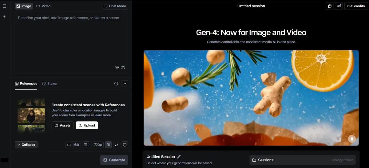 Gen-4 video generation accepts not only text prompts but also still images or short videos as input, automatically generating high-quality clips of several seconds to around 10 seconds. Providing reference images ensures consistency of characters and backgrounds across multiple scenes, while “Image/Video to Video” enables extensions of existing assets like 360° rotation of product photos or photorealistic rendering of rough CG.
