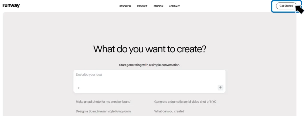 Register your email address on the official website and click the link in the confirmation email to access the Runway dashboard. Upon initial login, you receive 125 credits on the Free plan.