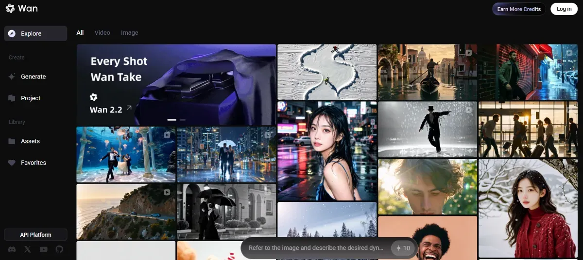 While Wan 2.2 itself is free, the cloud version “WAN AI” adopts a credit-based billing system as shown below:
