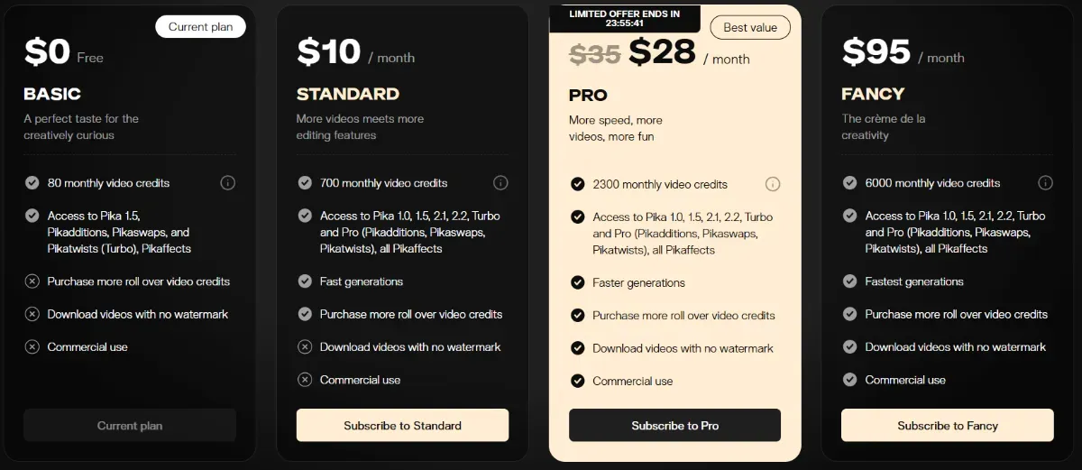 | Basic | 無料 | 80/月 | ウォーターマークなし、試用向け |