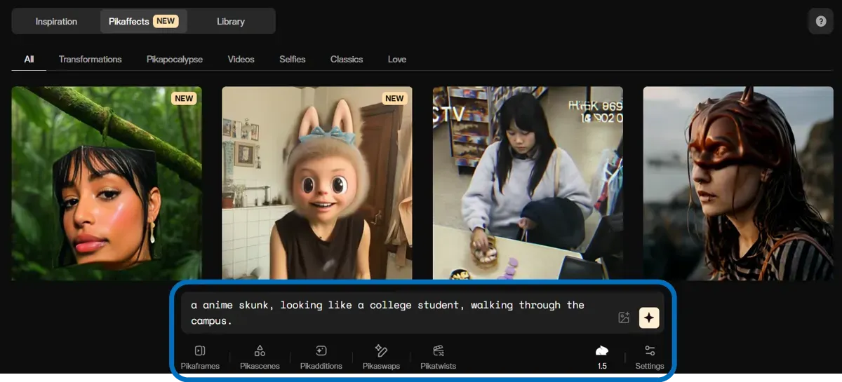 Pikaは「新規生成」と「編集」の両方に強みを持っています。大きく分けると以下のような機能があります。